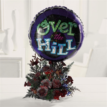 Their memory might be failing, but they'll never forget this birthday surprise! Spray-painted kangaroo paw, roses, Gerbera daisies, carnations and a balloon to remind them of their "accomplishment."
